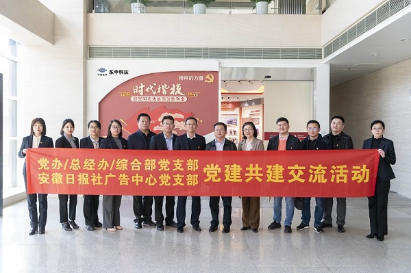 3月10日,安徽日報社廣告中心黨支部書記、廣告中心主任、安徽傳媒信息廣告公司總經(jīng)理王學(xué)菊一行到訪東華科技,與黨委辦公室/總經(jīng)理辦公室/綜合管理部黨支部開展黨建共建交流活動,并參觀了“時代楷?!鼻褴娡鞠冗M事跡陳列室。公司黨委副書記、紀(jì)委書記桑艷軍出席活動。