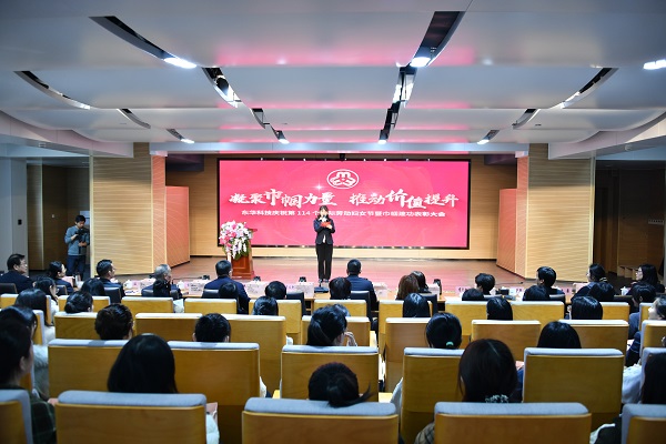 颯颯東風唱祝歌,春光瀲滟贊巾幗。在播放了先進集體和先進個人自創(chuàng)的短視頻后,獲獎代表們依次登臺接受表彰。“巾幗建功大講堂”環(huán)節(jié),4名“巾幗建功標兵”代表,同在場人員分享了她們的先進事跡。這幾位優(yōu)秀女性代表的故事,激勵著每一位女性同胞,展示了勇于擔當、昂揚向上的巾幗力量。此外,東華職工精心編排的歌舞曲藝等節(jié)目盛妝上演,共同慶祝節(jié)日,為大會增添了一抹靚麗的色彩。