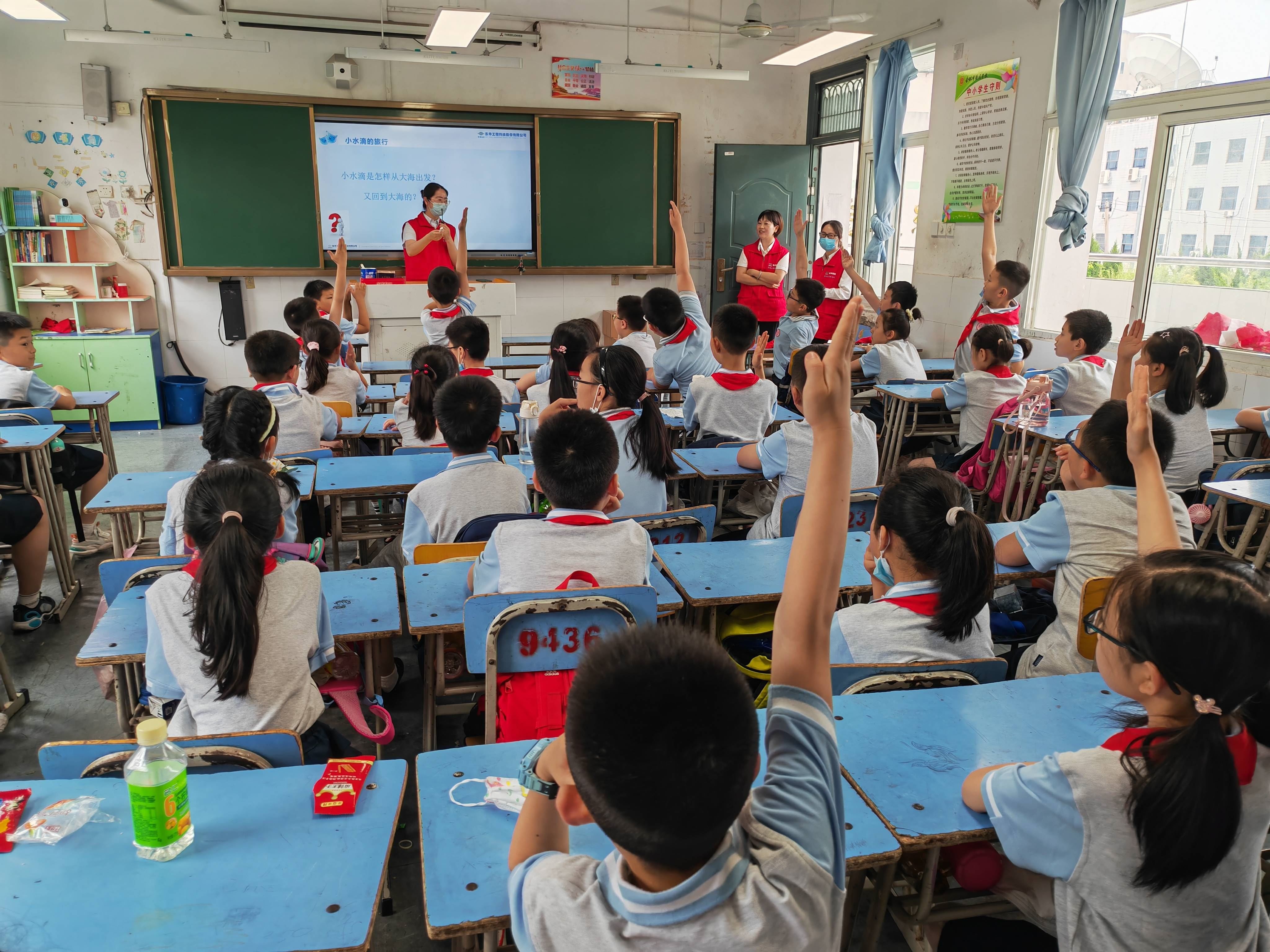 活動借助東華科技在環(huán)保行業(yè)的優(yōu)勢,通過圖文并茂、幽默風(fēng)趣講座,從“世界環(huán)境日、水的旅程、為什么要節(jié)約用水、節(jié)約用水從小事做起”四個方面,向小學(xué)生們詳細(xì)介紹了地球的水資源循環(huán)過程,并向孩子們推薦了一些日常生活中的節(jié)水小妙招。